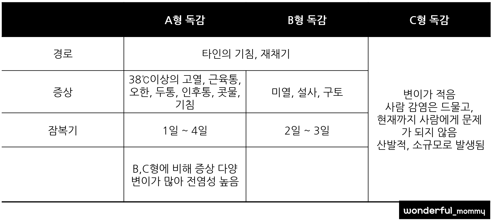 독감과 감기의 구별 방법은 아래와 같습니다.