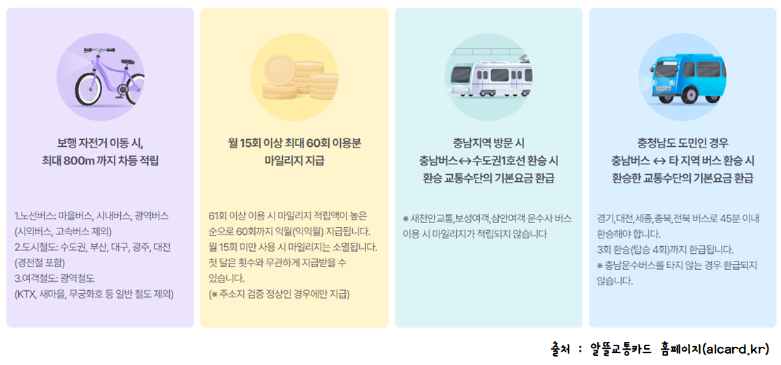 알뜰교통카드는 교통비 지출 절감 및 보행과 자전거 등의 친환경 교통수단을 동시에 활성화하는 새로운 수요관리 정책으로 개인의 자발적인 노력을 마일리지 적립이라는 보상을 통해 대중교통도 활성화에도 도움이 됩니다. 또한, 국토교통부는 7월부터 알뜰교통카드 플러스를 선보이며, 대중교통 이용자들의 경제적 부담을 줄이기 위해 다양한 혜택이 추가되었다고 합니다.